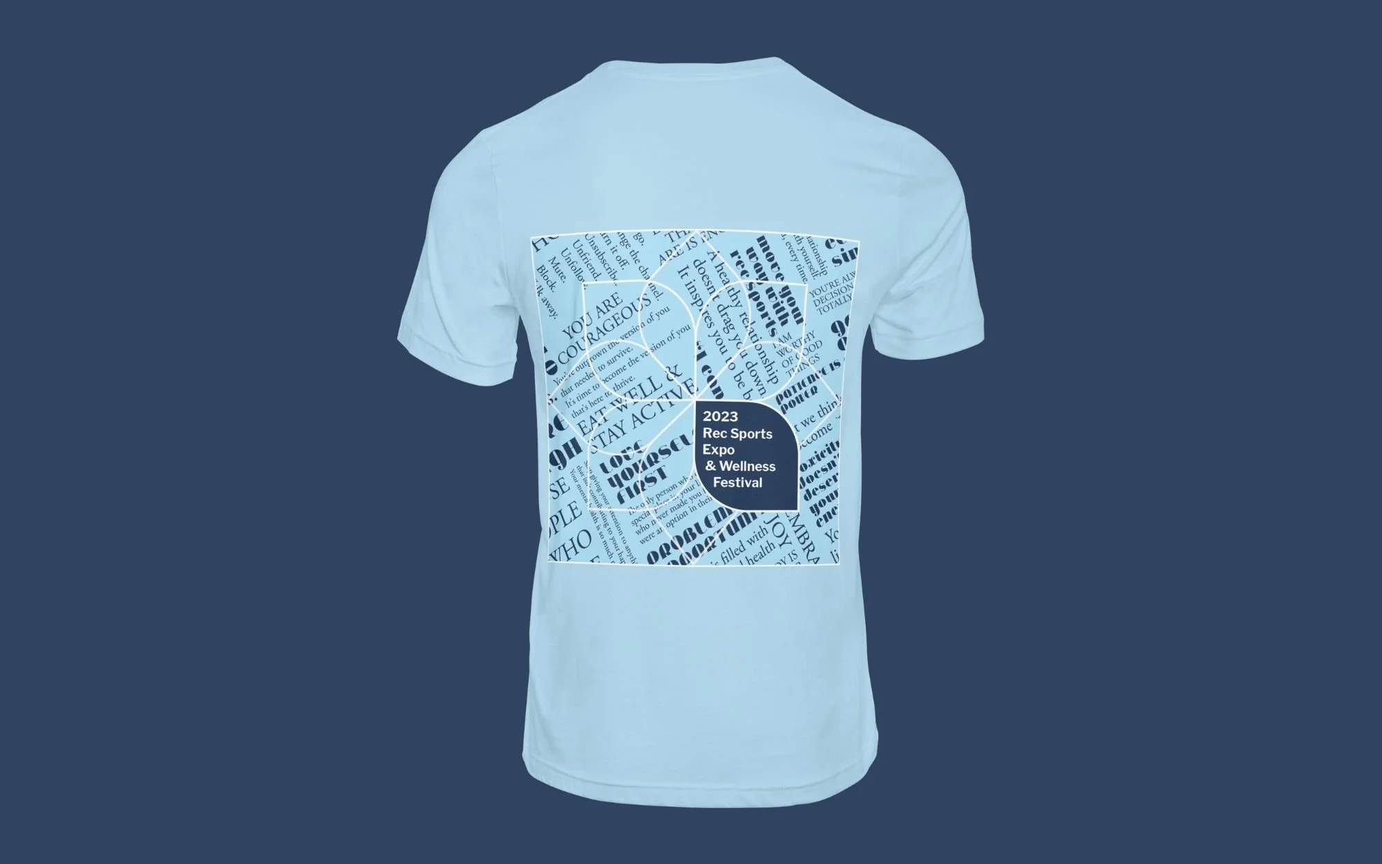 Designed t-shirts for the 2023 Rec Sports Expo, distributed to all event attendees.