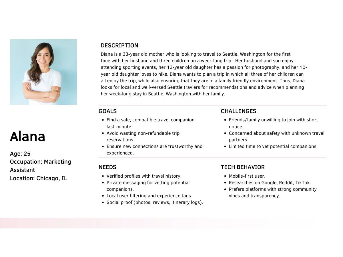 Travel Pals provides a community for travelers of all experience levels. In this community, experienced travelers are encouraged to post about their excursions, so that novice travelers can accrue inspiration and advice for their next trips. Additionally, our community recommends travel buddies to users based on similar profiles, or by request of the user.