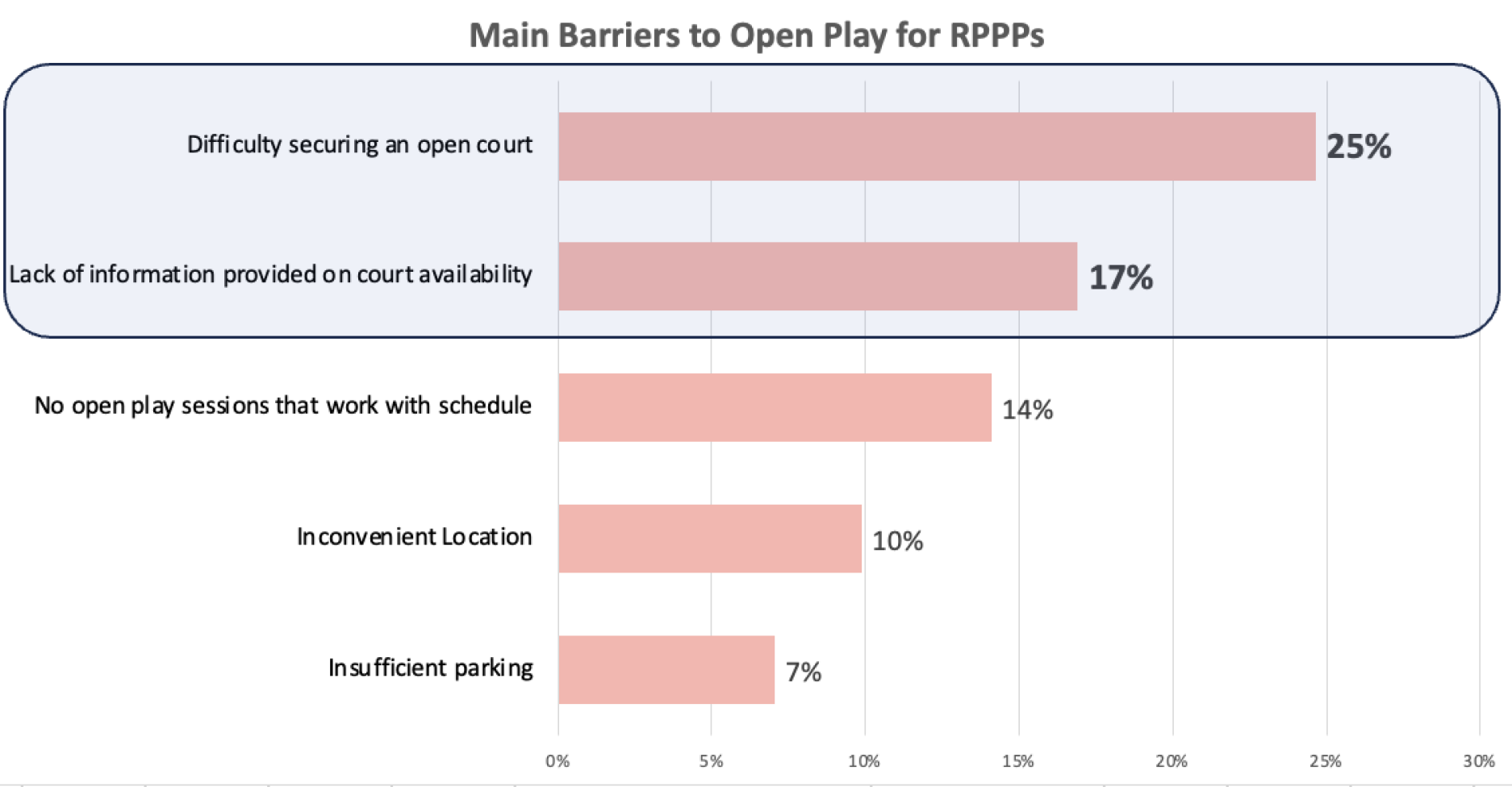 Pickleball's rapid growth has created a widening gap between player demand and the infrastructure available to support it. 44% of players cite overcrowded courts as the single biggest barrier to getting on the court, 39% of players struggle to find opponents of comparable skill, and no formal systems exist for most recreational players to find courts or compatible players. For casual, recreational players, the open play experience is filled with barriers that the sport has yet to solve.
